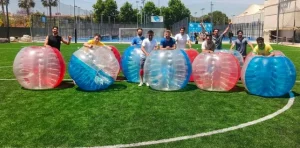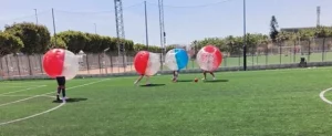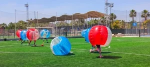 Bubble Football in Benidorm — premium bubbles with ventilation windows.